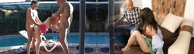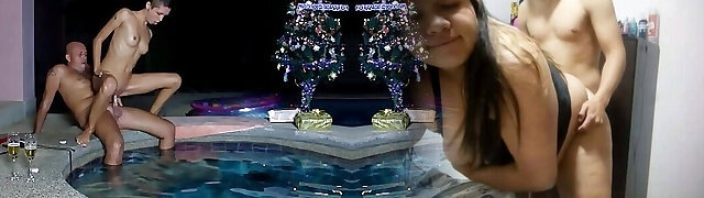 Step father fuck girl teenage in the pool after a Christmas party