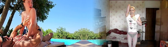 Teen staged a entire erotic show with her wooly pussy by the pool