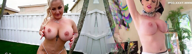 Outdoors poking by the pool with fake bosoms Latina Luna Star
