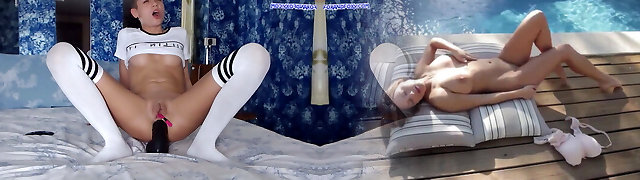 18yo very Skinny Teen Woman with small bra-stuffers and large Labia fucks herself till Squirting