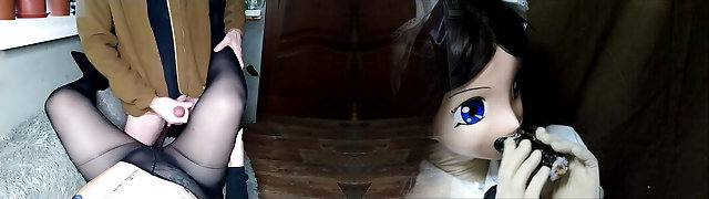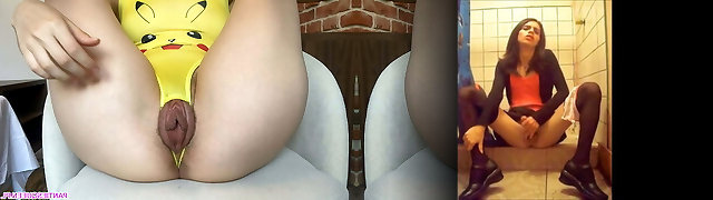 A slut in a pokemon pikachu costume pounds herself with large dildos and puts panties in her cooter