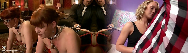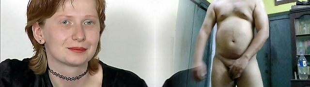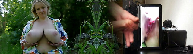 Horny, mature redhead with huge tits is toying her perfectly shaved pussy and moaning while cumming