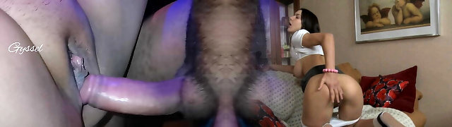 Insane schoolgirl asks parent to fuck her big ass hard in cowgirl position with his big cock close up.
