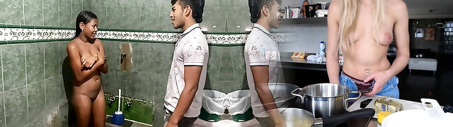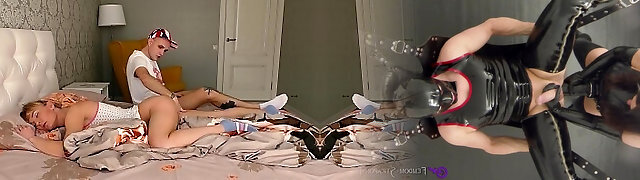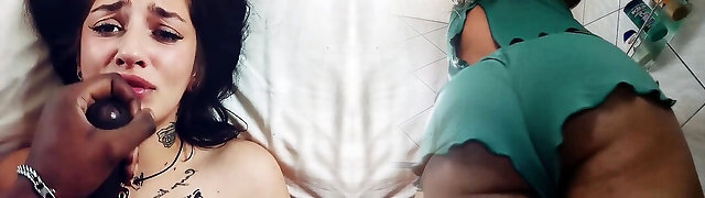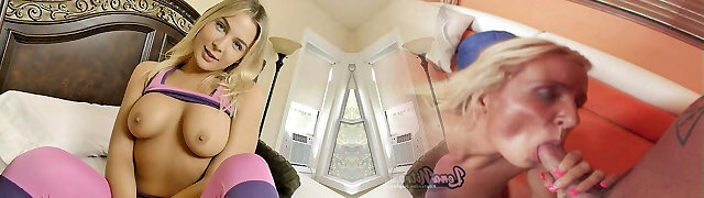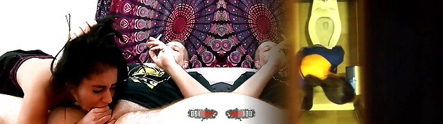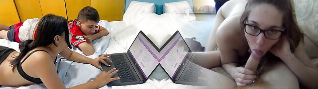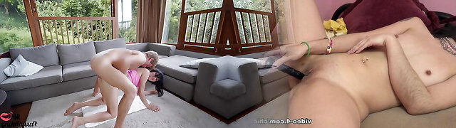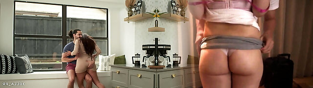 Step Mom caught Step Son with boner and helps to cum swift on her pussy while her Husband is home