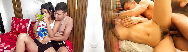 I instruct my little stepsister how to play on the cell phone while I make her feel my giant cock.