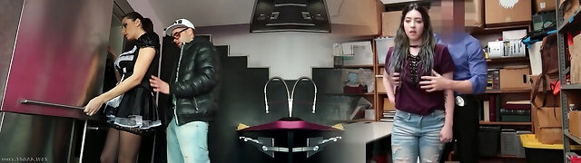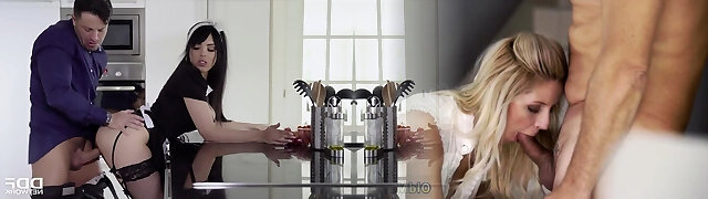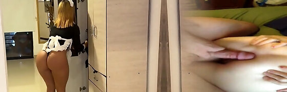 Kitchen Blowjob Handjob with Latex Gloves - Lady dressed in latex uniform Boots - Cum in my Hatch