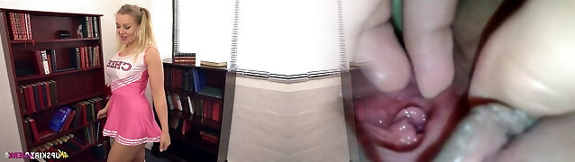 Gorgeous American teen (18+) cheerleader gets her wet shaved pussy fucked hard by meaty white dick